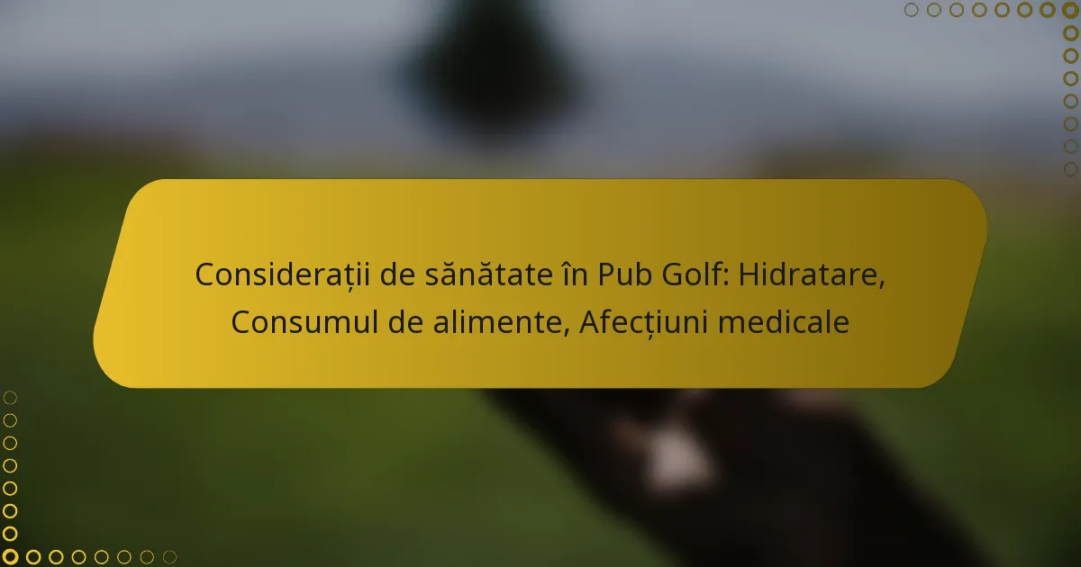 Participarea la pub golf necesită o atenție deosebită la considerațiile legate de sănătate, în special hidratarea și aportul de alimente. Menținerea unei hidratări corespunzătoare este esențială pentru a menține nivelurile de energie și a preveni deshidratarea, în timp ce alegerile alimentare corecte pot influența absorbția alcoolului și pot atenua efectele acestuia. În plus, persoanele cu afecțiuni medicale, cum ar fi diabetul sau problemele cardiace, trebuie să fie atente la sănătatea lor pentru a asigura o experiență sigură și plăcută.