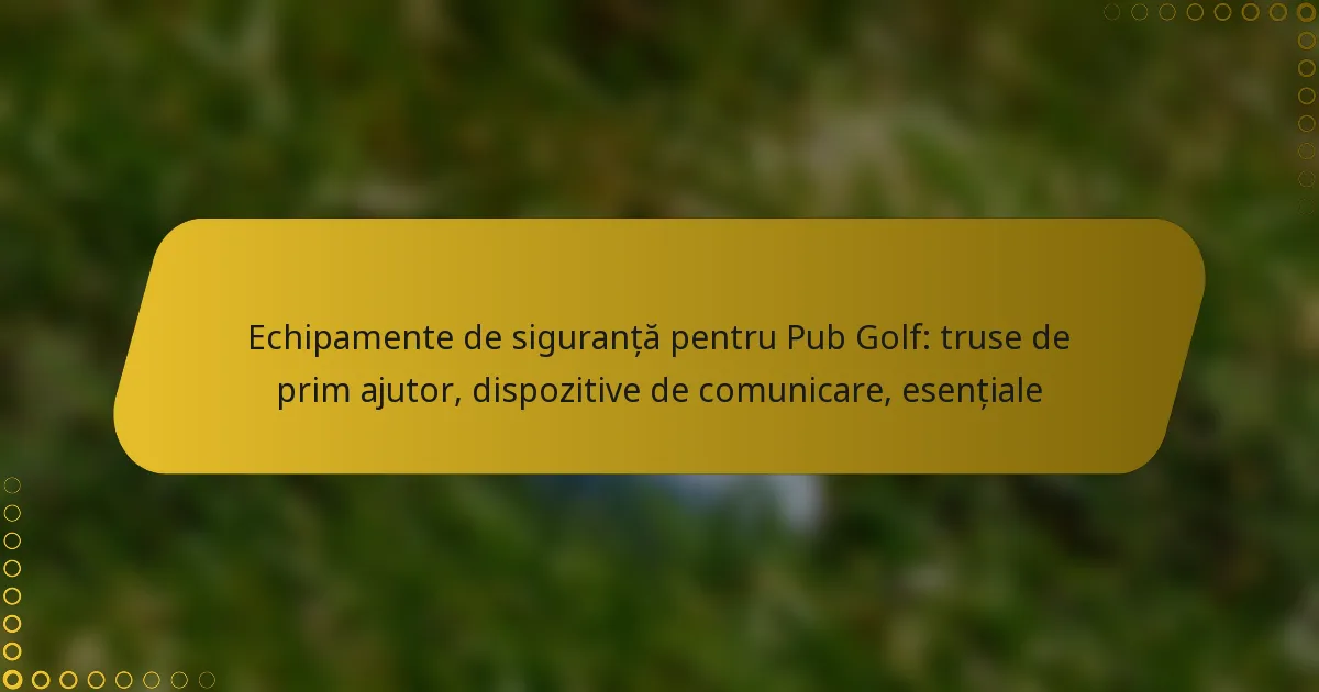 Pub golf implică consumul de alcool în timp ce navighezi prin diverse pub-uri, ceea ce poate duce la mai multe riscuri, inclusiv leziuni și probleme de sănătate. Echipamentul de siguranță adecvat, cum ar fi trusele de prim ajutor și dispozitivele de comunicare, poate reduce semnificativ aceste riscuri și asigura o experiență mai sigură pentru participanți.